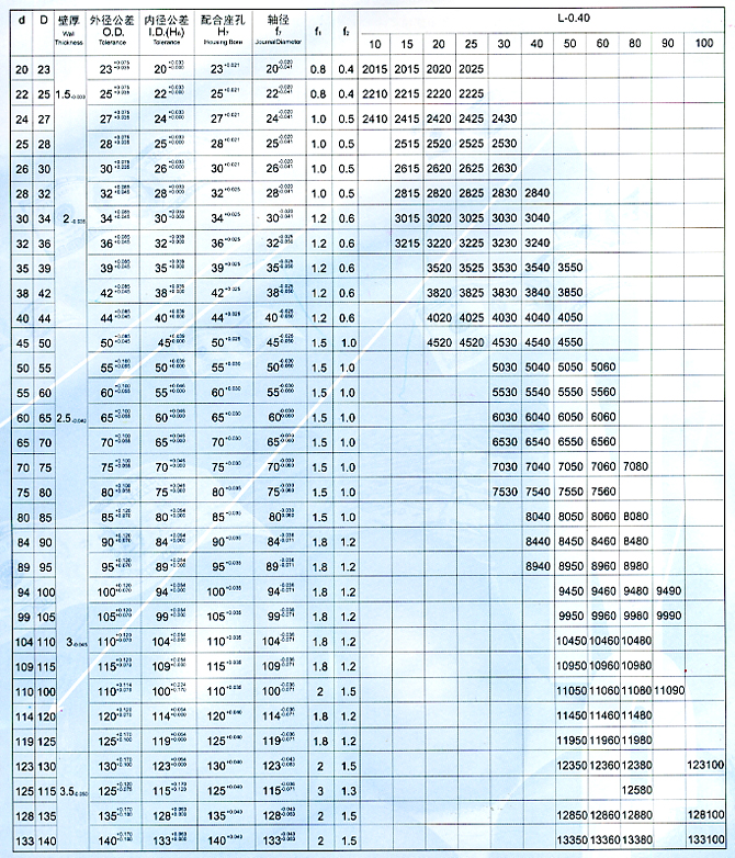 ◎ 滑动轴承标准系列尺寸表